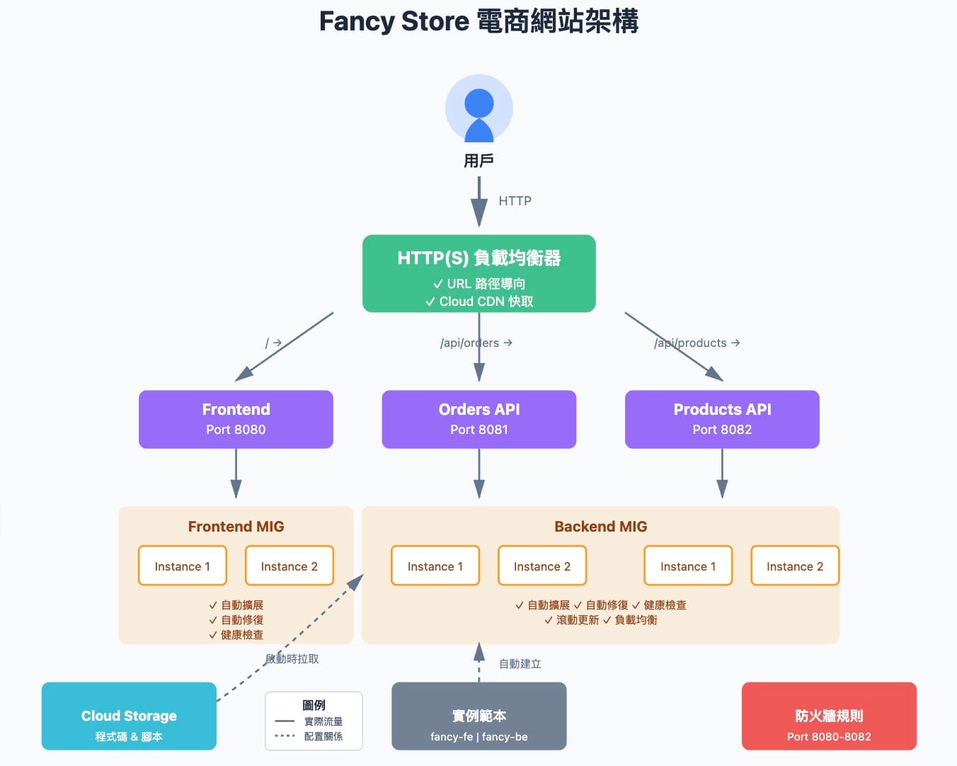 設定全球性負載平衡器分配流量,並透過 CDN 加速靜態內容的傳遞
